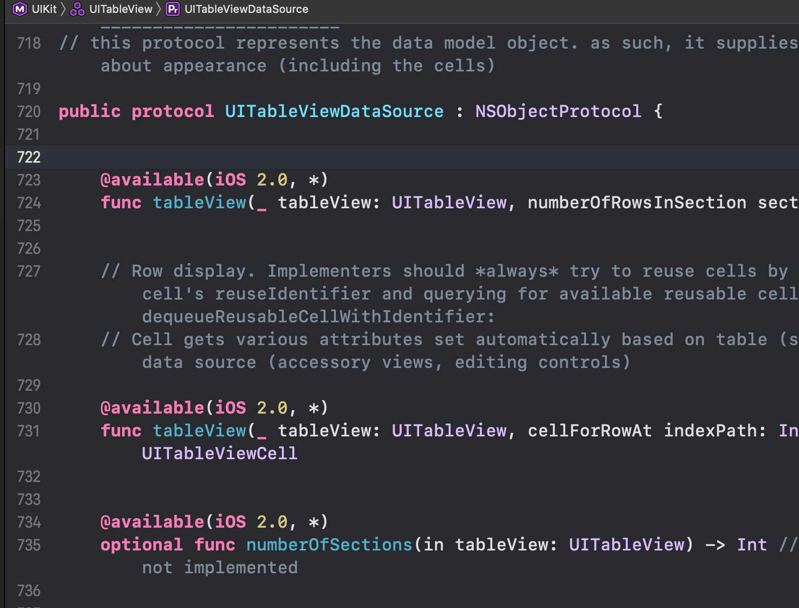 변수로 선언된 dataSource의 주인공인 UITableViewDataSource로 들어가 보면