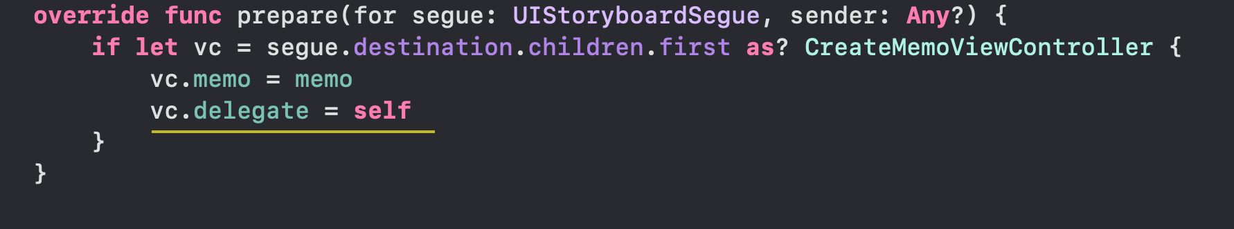 그러고 prepare 할때 vc.delegate= self( self 는 현재 vc == 첫번째 vc )로 위임하며
