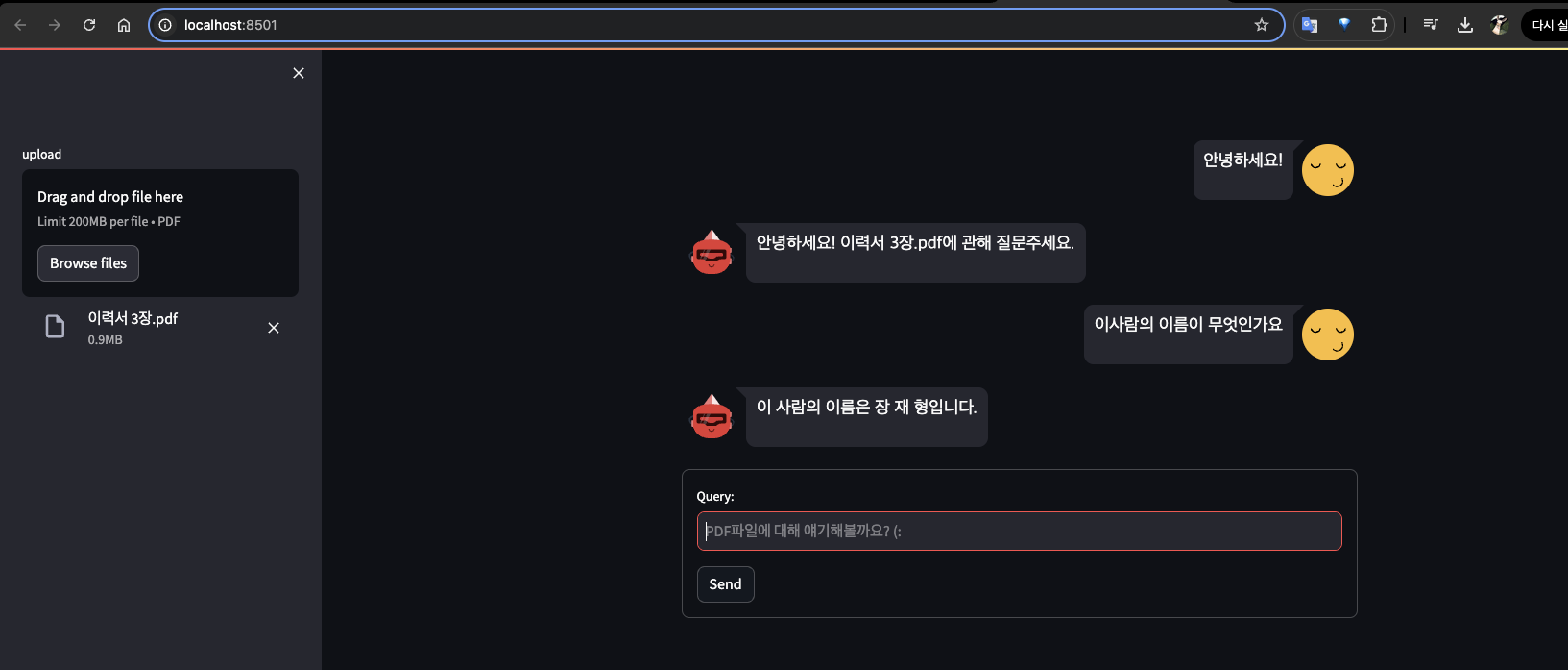 user_input = st.text_input("Query:", placeholder="PDFํ์ผ์ ๋ํด ์๊ธฐํด๋ณผ๊น์? (:", key='input')